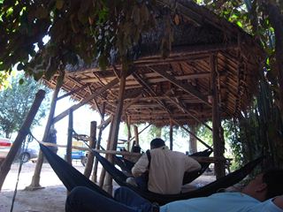 昼食が終わると、トムさんおもむろに、ハンモックを設置しました。お昼寝タイムだそうです。最初は、え!、観光に来ているのにお昼寝タイム?って、思ったんだけど、ハンモックにゆらりゆらり身を任せてみると、なーんか、イイカンジ。スラ・スランの水辺が見え上を見あげれば、イイカンジの木陰。なーんだろう、この気持。