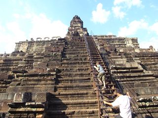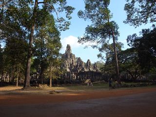 ライ王のテラス〜ピミアナカス・バプーオンとすすんでいくと、目の前にバイヨンが見えてきた。ちょっと、幻想的な感じっす。ここまで、思ってきたことなんだけど、どれをみても、見飽きないっていうか、もっと、一つ一つをじっくり見ていきたいと思った。遺跡のそれぞれの時代が違うせいなのか、写真やTVで見た2次元の世界とは違い、実際のそれらは、歴史の風格・重みを積み重ねた言葉では表すことのできない、実際にその場所でしか体験できない素晴らしさがあった。 |