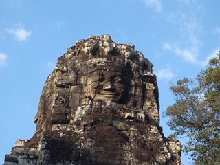 トムさんモーちょっとゆっくり!って言いたかったけど、反面もっと沢山の遺跡を見てみたいという衝動もあり、この時点ですでに、また、近いうちこの場所へ来るぞと、思う私もりたろうでありました。宇宙の中心・バイヨン、なにか全てを見透かされているかのように私に微笑みかける、観世音菩薩像 |