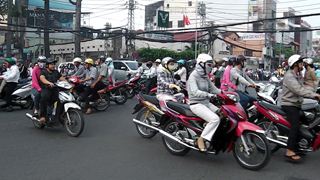 街に近づくにつれて、名物、バイクの軍団がぁ。すごいぞ、そして、クラクションの嵐!、嵐! 世界で一番、クラクションの消費量?が激しい国では?クラクション修理率もぉ?って、思うほど、すごいぞぉ。