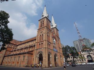 おお、めだつぞ。聖母マリア教会。で、その先がドンコイ通りだ。